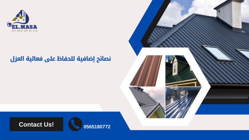 من المهم إجراء صيانة دورية لمراقبة حالة العزل وضمان عدم وجود تلف أو تآكل. كما يجب التأكد من عدم وجود تسربات أو مشاكل في الأسطح قد تؤثر على العزل.